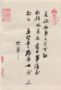 “襄啟,暑熱不及通謁,所苦想已平復(fù)。日夕風(fēng)日酷煩,無處可避。人生韁鎖如此,可嘆可嘆。精茶數(shù)片,不一一,襄上。公謹(jǐn)左右……”。
