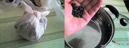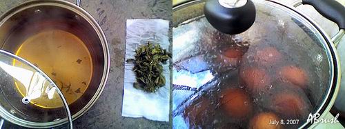 在鍋里盛半鍋水,放入茶葉(我用的可是上好的碧螺春),煮沸約5分鐘。
