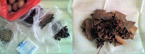 雞蛋(好像是廢話),八角,紗布(藥店有賣的),桂皮,茴香,茶葉