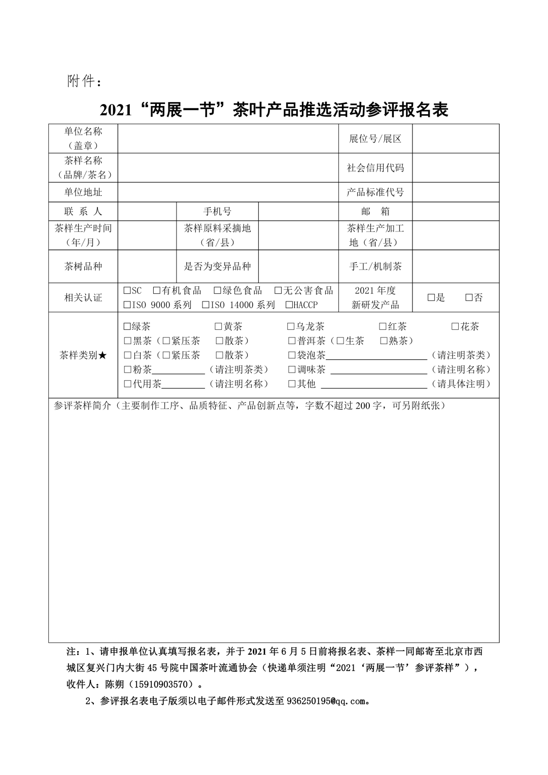本文標(biāo)題:中國(guó)茶葉流通協(xié)會(huì)關(guān)于邀請(qǐng)參加2021“兩展一節(jié)”茶葉產(chǎn)品推選活動(dòng)的通知 - 茶葉新聞_中國(guó)茶葉新聞_國(guó)際茶葉新聞