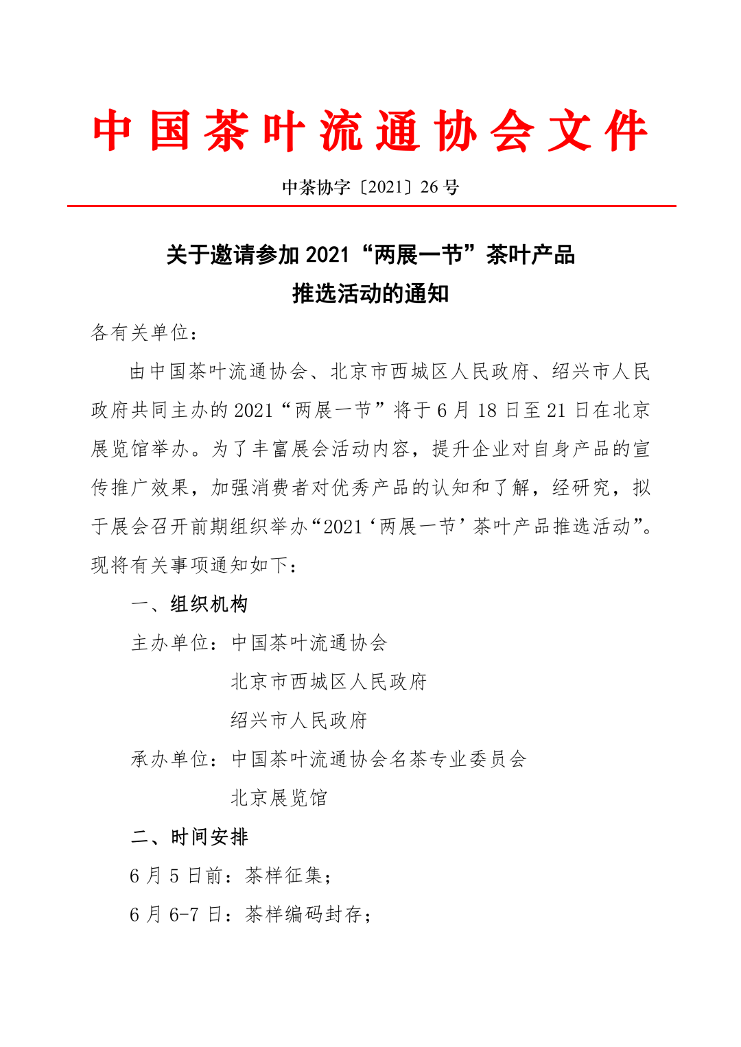 中國(guó)茶葉流通協(xié)會(huì)關(guān)于邀請(qǐng)參加2021“兩展一節(jié)”茶葉產(chǎn)品推選活動(dòng)的通知